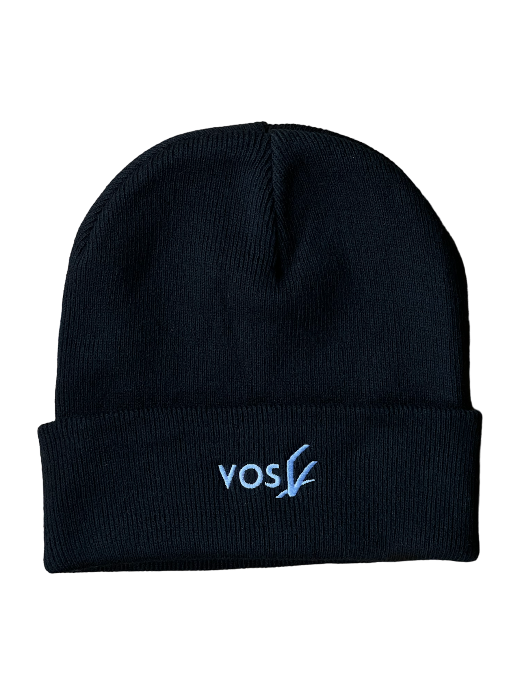Cuffed beanie in black with white embroidered VOS Text Logo